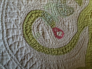 Dealer #89 has a faded but lovely quilt with the finest of stitching and design details.
