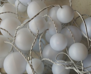 Stars Too has yards of white spheres that can be hung along moulding or across entry ways so all can see the light!