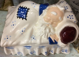 Dealer #65 has a porcelain figure of Santa in his off-time. Resting at last!