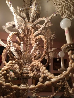Beach dreams begin with an encrusted shell chandelier found at Stars Too.