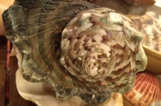 Seashell specimens at Stars Too take us away to the ocean and the waves when held up to one's ear.