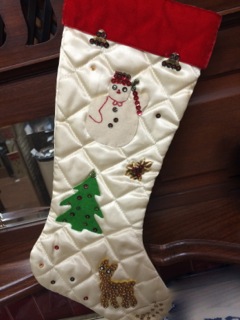Dealer #20 has a simple satin stocking embellished with felt cut-outs and sequins.
