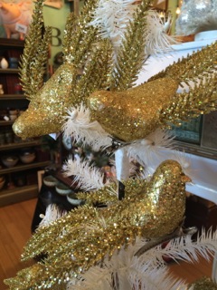Golden birds fly effortlessly on a small tree at Stars Too.