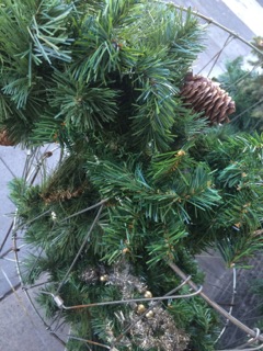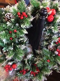 Dealer #42 has the classic vintage plastic wreath decorated with small berries and pinecones.