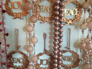 Great garlands and "word" ornaments fill a wall at Stars Too.