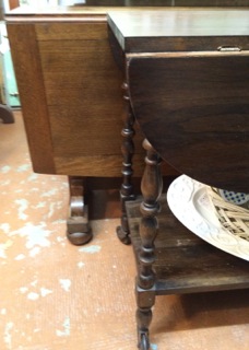 Drop leaf tables are perfect for serving and eating and break down to a compact size when the guests are gone; these two available from Dealer #60.