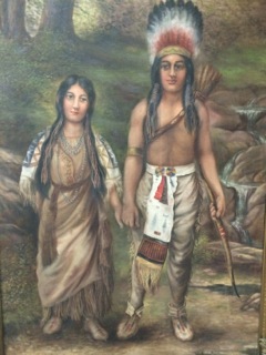 This oversized painting fills the wall and reminds us of the first Thanksgiving where strangers broke bread. Artwork from Dealer #156.