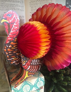 For now, let's enjoy celebrating Thanksgiving with family and friends. Shop with us for all your last minute decorating needs daily from 11-6. Shop Smart. Shop Stars. Paper turkey decoration from Dealer #103.