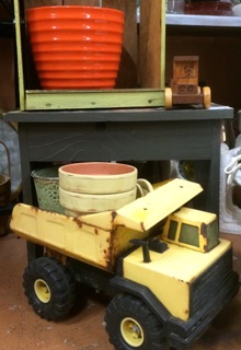 Dealer #65 perfects the still life in fall colors with planters, pots, and an old yellow truck!