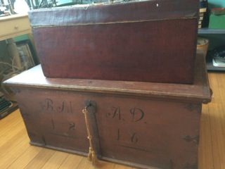 Nubby woven textiles and blankets come out of storage and fold over the arm of a sofa or chair. Dealer #24 has these two wool covers along with several others for the upcoming Fall.