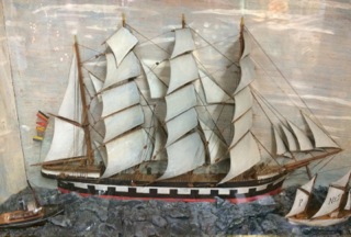 Dealer #111 has a turn of the century diorama of a great ship. Perhaps from France we travel by water to the Mediterranean.