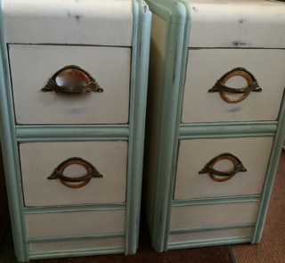 Dealer #42 has a sweet set of nightstands in ivory and trimmed in teal.
