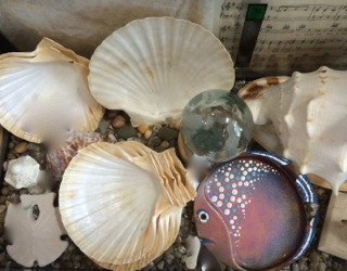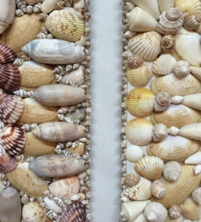 Sea shells hand-picked from the beach become one-of-a-kind mirrors. Detail shot from Dealer #60.