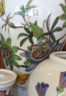 A large assortment of Portmerion porcelain from Dealer #48 is lovely to look at with crisp white setting off tender florals.
