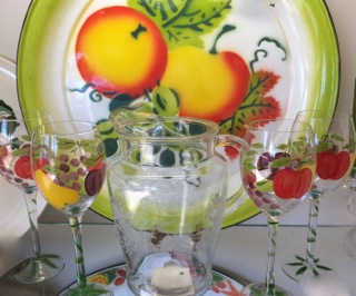 Dealer #31 has a great platter and clear glass pitcher and goblets with simple designs. Serve up something cold and enjoy.
