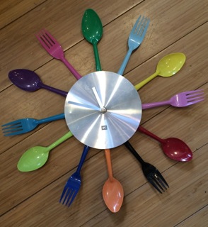 Bright utensils tell us it's time to wind down and perhaps eat…available at Stars Too.