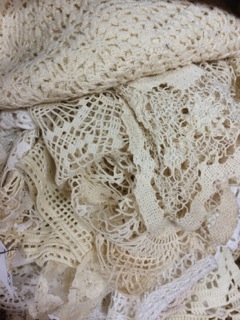 Dealer #54 has yards of lace goods for the table and chair backs…use creatively. There are no rules!