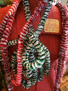 A tall stack of brilliant colored banners fill a shelf at Stars Too.