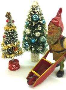 Work is never done for a Christmas elf. This one from Dealer 77 is priced at $29 and the vintage trees are $21 & $35.95 each. Wonder if he whistles while he works like the dwarfs?