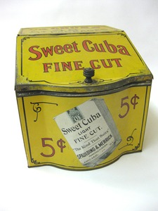 My how things have changed over time. Smoking is such a no no these days but in past times it was the thing to do. These kinds of tobacco tins continue to be highly collectible. Dealer 48 has this handsome tin for $245