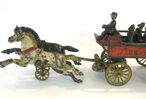 And this cast iron piece of Americana is just that. A classic fire patrol wagon pulled by two horses and loaded with hatted firemen, we enjoyed looking at this handsome toy. A rare find in our part of the country, Dealer 11 has it priced at $1250. Just as we were preparing to post our Let's Shop for this week, a collector came in a bought this fabulous piece. Hope it is going to a good home.