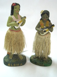 Love going to Hawaii too but these vintage hula girls nodders are a kick. Dealer 54 has them priced at $35 each. Let her swing girls.