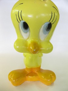 This is a great way to save your pennies. Tweety is a bank. Dealer 118, our Mr. Pottery has Tweety for only $25. Wonder if Tweety twitters?