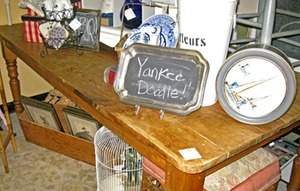 You could feed an army at the wonderful harvest table from Dealer 55. They have it piled with all sorts of decorative items in their space but it caught our shopping eye. First, you never, never see large tables like this anymore and it is a GREAT price at $675. (they have a sale sign up also, so check it out during the sale)
