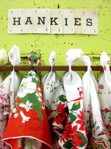 Dealer 77 has a fabulous collection of vintage hankies. Priced from $5.95 to $16.95. Shed tears in style