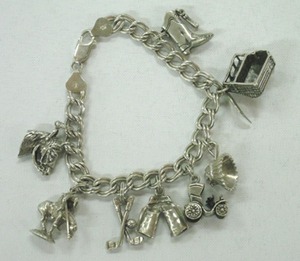 It was time to shop the cases in both of the malls. While over at Stars & Splendid we came upon Dealer 25's showcases. She always has wonderful collectible pieces. So here is a very small sampling to whet your appetite for shopping. A charm bracelet is a nice addition to any women's jewelry trove. And we think this one is a keeper. This Italian bracelet has 8 charms, priced at $65 and would look lovely on your wrist.