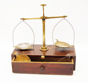 What a handsome scale this is. This 19th Century pharmacy scale is being offered for $195.00 by Dealer 21. That price includes the scale and assorted pans. What a gem in your den.