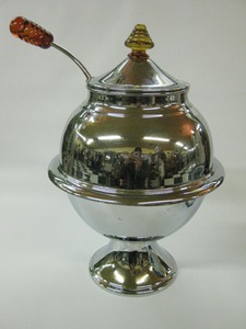 When was the last time you saw a punchbowl with Bakelite handles? Never is our answer. This piece screams, Deco to us but it has us with its Bakelite handles. Dealer 72 has this beauty for $175.