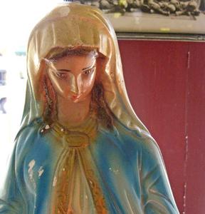 Religious icons have become a unique collecting category. This colored statue of Mary fits right into this area. Dealer 36 has her priced at $42.00
