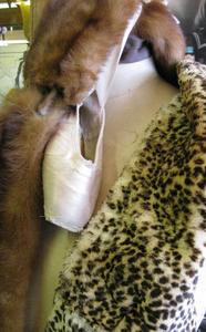Dealer 36 is a fashion designer with an unique eye. Her creations are featured in her booth along with assorted treasures. We love to shop with her and see what new item she has found or created out of found items. These bits and pieces in her space are the fur collars for $18 & $22 and the ballet slippers for $12