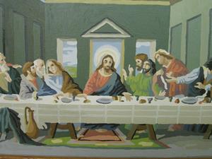 We do have the thing for paint by numbers. Of course we remember the day when you could pick them up for a song. Well those days are gone but we are still interested when we see a unique one. And here it is. The Last Supper. Now who in your neighborhood is going to have this? You will. Dealer 37 has it priced at $45.00.