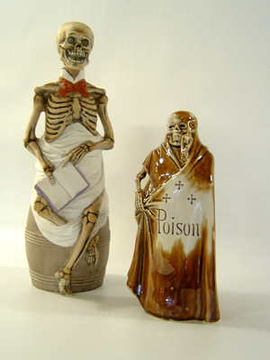 These decanters are quite wonderful and weird at the same time (an apt description for this Let's Shop shopper). The German skeleton maitre'd decanter is from the early 1900's and is priced at $650.00 and the other German decanter is dated at the 1930's and offered at $100.00 by Dealer #15