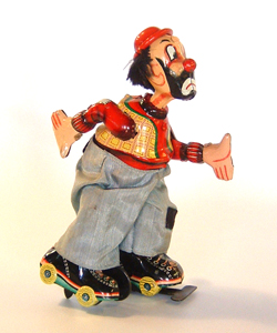 This week we are showcasing just a few of the toys that Dealer #79 is offering in his two showcases at Stars & Splendid. This skating clown is a Japanese windup toy and priced at $135.00.