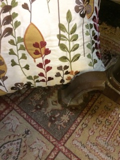 Pillows and andirons for the fire team up on the floor of Dealer #12's space.