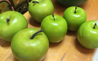 Nothing beats a great display of fruit. Dealer #82 has these crisp apples on a bench. Use as a centerpiece with the rolling pins featured earlier or simply line these up across any windowsill for instant impact!