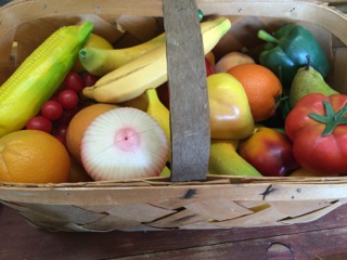Dealer #25 has this woven harvest basket filled with vegetables for a fresh take on the centerpiece!