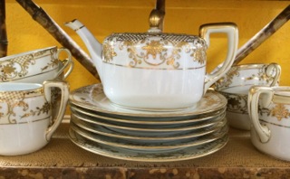 Dealer #34 also has this elegant service of porcelain with a delicate frosting of gold!