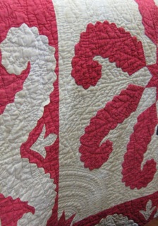 Dealer #6 has this fabulous red and white quilt with an intricate stitched pattern.
