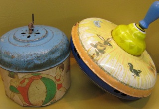 Dealer #76 has two well worn and much loved tops ready for spinning!