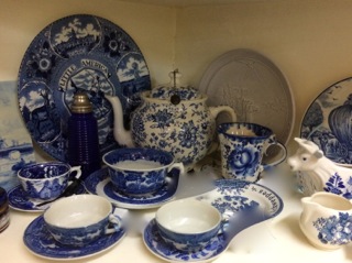 For the person who adores transfer ware in blue and white, Dealer #68 fills a corner cabinet with unique pieces.