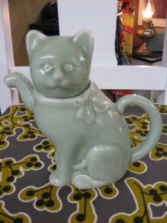 I'm a little teapot...from Dealer #93. This celadon cat is perfect nestled up on the kitchen shelf in the sunlight!! The search for our feline friends was more difficult than anticipated.