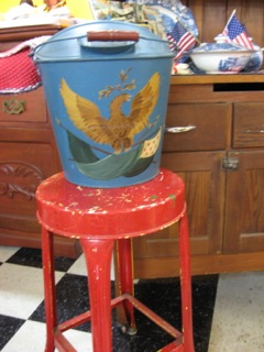 The perfect weathered stool serves up the extra seat for company and the coal bucket would be great with fresh flowers. all available from Dealer #69. I'm seeing daisies, red snapdragons, and love-in-a-mist for this Fourth of July celebration.