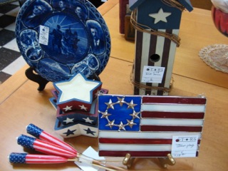 Walking through the stores, it is amazing to see all the displays to show off our American pride. Dealer #4 has an interesting selection of items tabletop. Love the candles!!