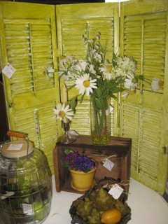 Dealer #17 has another still life waiting to be painted. The shutter as a backdrop adds color and texture to the display in front.