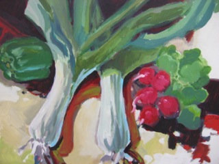 Green onions and radishes never looked so good. LOVE the brush strokes and color in this garden harvest painting from Dealer #41.