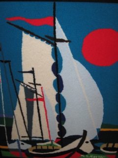 Dealer #79 has this brilliant yarn art wall decor in bold primary colors. Lets sail through the stores and shop further for color and display ideas.